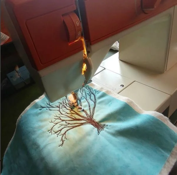 I did set up my mother in law’s old singer sewing machine in the corner of my studio, thinking it would save me a lot of time, I hardly use it, except for trees, freehand machine stitching trees is a lot of fun!
