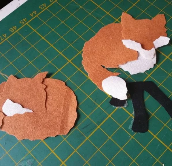 I get an idea, sketch it out, often using Photoshop to resize or move things around. Once happy with the design, I trace it, to size, onto clear tracing paper with a fine point artist pen that will not smear. This becomes my pattern, and then I trace pattern pieces from it and use them to cut out my fabric shapes.